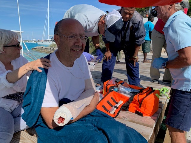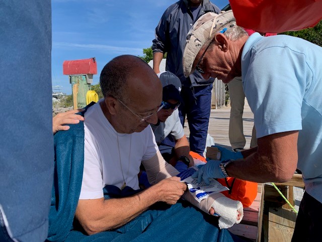 In the remote cays near the Exuma Cays Land and Sea Park, a strong sense of community has developed, and folks work together in times of need. Immediately after reaching John, park wardens contacted their neighbors at Bell Island, who, without delay, dispatched their medic, David, to help. While the wardens waited for David, they quickly began working with Marybeth (who as good fortune would have it is a nurse), to care for John.