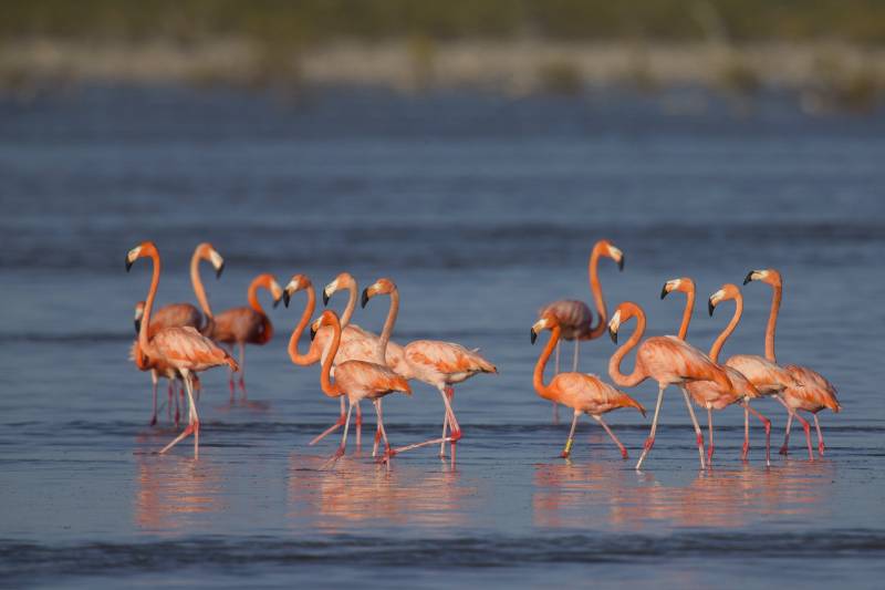 By the 1950’s a close working relationship had been established between the National Audubon Society and The Bahamas. Concerned with the sudden decline in the flamingo population during the early years of that decade, Audubon sent its then research director, Robert Porter Allen, to Inagua in an attempt to prevent the birds’ fast approaching extinction. Allen arrived in Inagua in the spring of 1952. Sam Nixon, the best hunter, and guide on Inagua took Allen to the Upper Lakes of Inagua where they found more than a thousand flamingos courting as Nixon had promised they would. The birds massed in a riotous courtship ritual of head-turning, wing flicking, and exaggerated strutting that Allen called “The Flamingo Quadrille”.